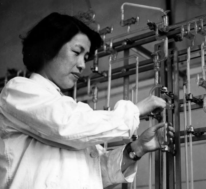 Trabajó en una compañía de seguros pero renunció en 1941 para matricularse en la Escuela Imperial de Ciencia para Mujeres (antecesora de la Universidad de Tōhō), en la que se graduó con el título en Química dos años después. Rechazó varios ofrecimientos para trabajar para el ejército. Su gen pacifista no se lo permitió. No concebía que la ciencia se utilizara para matar.